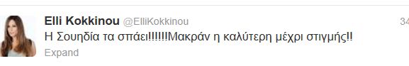Η Loreen, η συμμετοχή της Σουηδίας θεωρείται φαβορί. Η σκηνική παρουσία, οι κινήσεις καποέιρα και ο μυστικισμός πάνω στη σκηνή έχουν αποκτήσει πολλούς fans…Αναμεσά τους ήταν και η ‘Ελλη Κοκκίνου, που έγραψε στο twitter της :