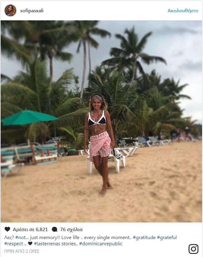 Μπορεί η Σόφη Πασχάλη να έχει αποχωρήσει από το Survivor και να βρίσκεται πλέον στην Ελλάδα, ωστόσο φαίνεται να αναπολεί τις στιγμές που πέρασε στον Άγιο Δομίνικο.Η γνωστή γυμνάστρια, ανέβασε μια φωτογραφία στον προσωπικό της λογαριασμό στο Instagram, στην οποία ποζάρει χαμογελαστή σε μία παραλία, φορώντας το μαγιό της και έγραψε: «Λες? #not… just memory!! Love life .. every single moment.. #gratitude#grateful #respect».Δείτε την ανάρτηση: