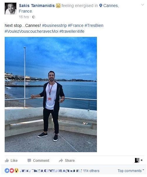 Ο γνωστός παρουσιαστής βρέθηκε πρόσφατα στις Κάννες. Ήταν εκεί για επαγγελματικούς λόγους.  Φρόντισε να ενημερώσει τους διαδικτυακούς του φίλους για το ταξίδι αυτό και η φωτογραφία που «σήκωσε», συγκέντρωσε πάνω από 11.000 likes στο facebook.