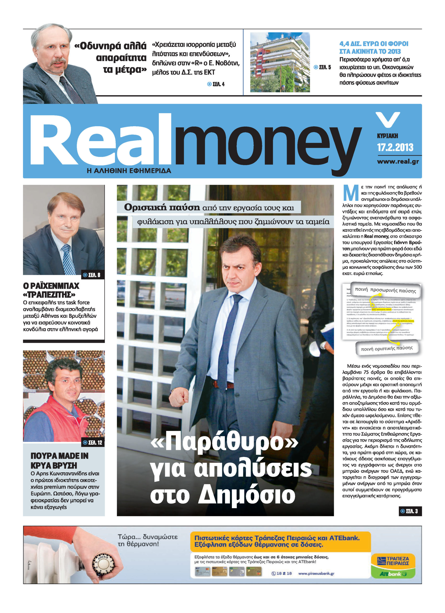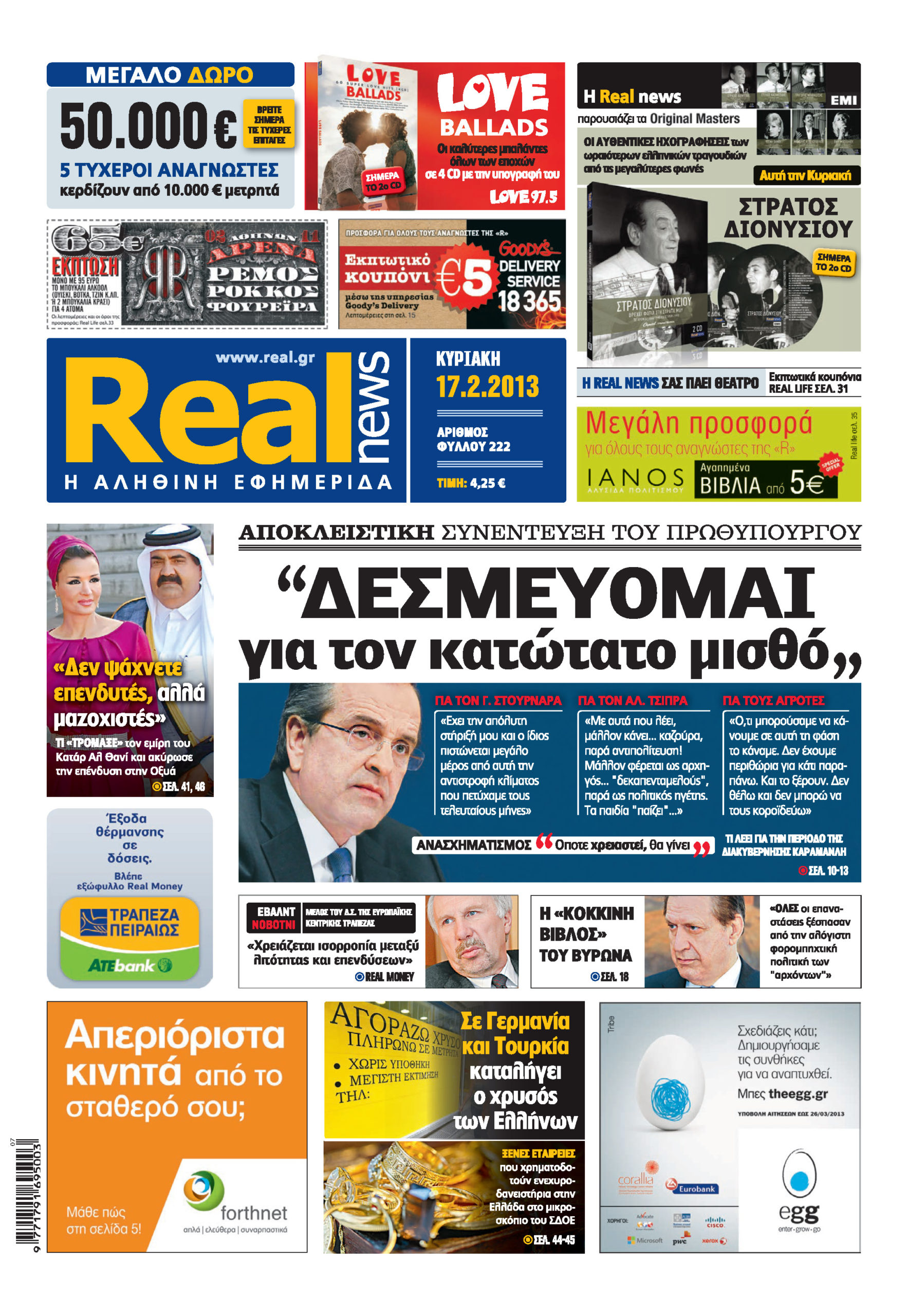 Με αποκλειστική και βαρυσήμαντη συνέντευξη του πρωθυπουργού Α.Σαμαρά και τίτλο: “Δεσμεύομαι για τον κατώτατο μισθό” κυκλοφορεί σήμερα Κυριακή η Realnews.