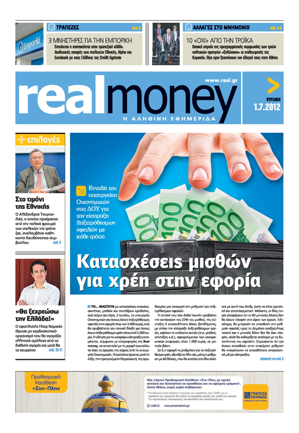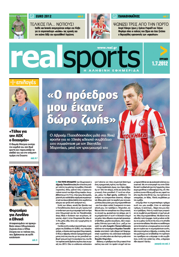 40.000 ευρώ χαρίζει η REAL NEWS σε τέσσερις τυχερούς αναγνώστες που θα βρουν μέσα στις σελίδες της την “χρυσή” επιταγή με την οποία θα κερδίσουν από 10.000 ευρώ μετρητά. Για όσους λατρεύουν το καλό μπάσκετ, η εφημερίδα προσφέρει το DVD με τον συγκλονιστικό τελικό της Κωνσταντινούπολης που έφερε τον Ολυμπιακό στην κορυφή της Ευρώπης.Χάρις Αλεξίου και Δήμτρα Γαλάνη – Live Παλλάς 2012, ένα νέο διπλό CD.Με αυτό το φύλλο της αγαπημένης σας εφημερίδας θα προμηθευτείτε το 1ο CD και την κασετίνα. Μαζί θα πάρετε και το εκπτωτικό κουπόνι για τη μεγάλη συναυλία της Χάρις Αλεξίου και της Δήμτρας Γαλάνη στο Θέατρο Βράχων.Barry White όλες οι μεγάλες επιτυχίες του, αυτή την Κυριακή το 2ο CD.Πλούσια σε προσφορές αλλά και σε ύλη, η REAL NEWS αποκαλύπτει: ” Βέτο από την τρόικα” -10 “όχι” των δανειστών για τις αλλαγές στο μνημόνιο- Αμήχανη η κυβέρνηση,την ώρα που οι εταίροι “ξηλώνουν” την προγραμματική συμφωνία των τριών πολιτικών αρχηγών. -Έγγραφο-φωτιά από το κόμμα της Μέρκελ: “Για να κερδίσει η Άγκελα,πρέπει να χάσει η Ελλάδα” -Αντώνης Σαμαράς: Η επέμβαση του Απριλίου,η υποτροπή,τα “σχοινιά” και το κρίσημο δίμηνο -Ο Βενιζέλος στις Βρυξέλλες : Εσπρέσσο στην πλατεία Σαμπλόν και τετ α τετ με τον Γιώργο Παπανδρέου εν πτήσει – Κωστής Χατζηδάκης: “Οι τζάμπα μαγκιές είναι για εσωτερική κατανάλωση” -Γιώργος Δώνης: “Φεύγω από το σπίτι μου” -Αβραάμ Παπαδόπουλος : “Δώρο ζωής το 10ετές συμβόλαιο με τον Θρύλο”