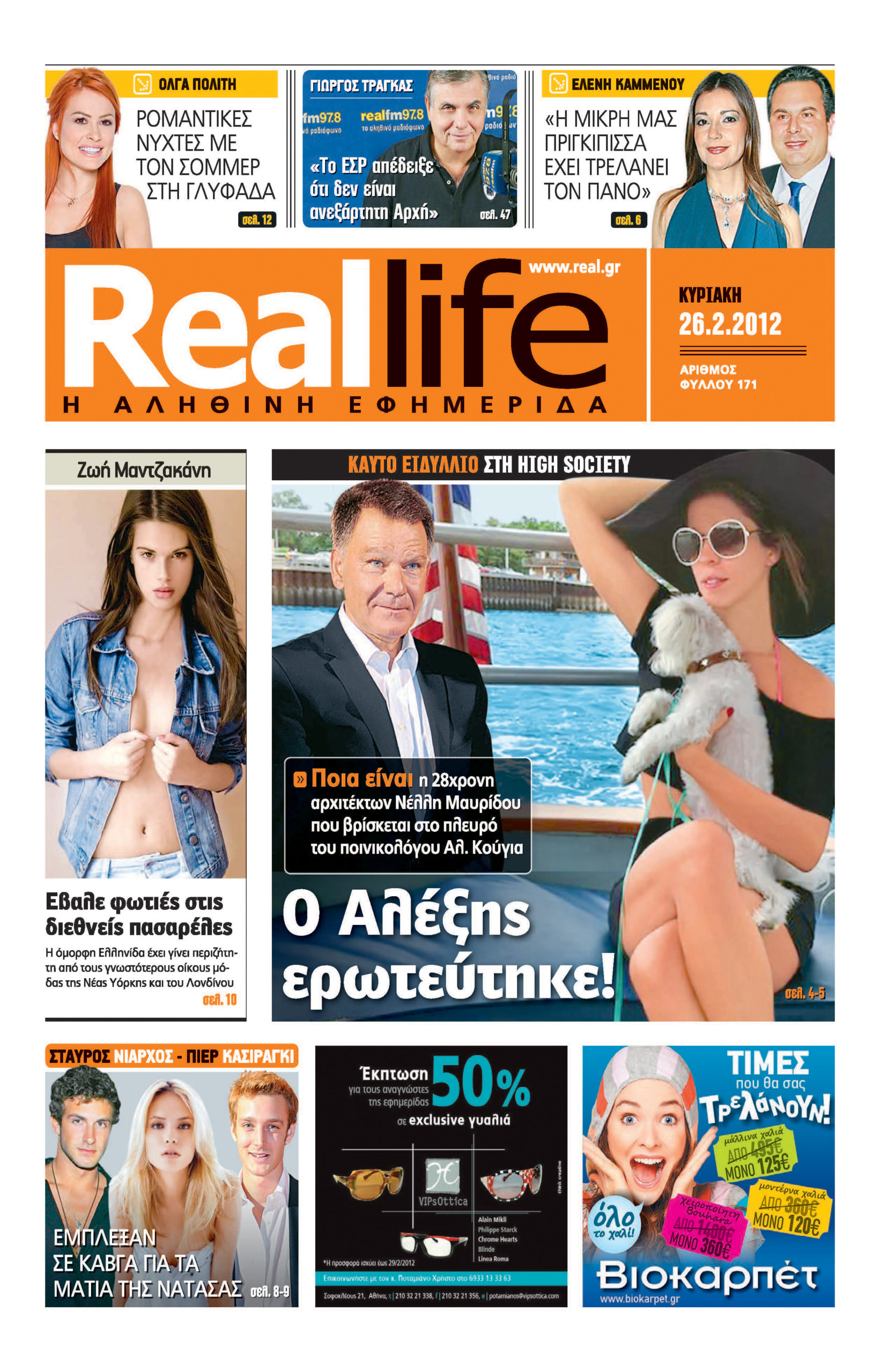 Βρείτε στις σελίδες αυτής της REAL NEWS, τις 8 “χρυσές” επιταγές και κερδίστε αμέσως, 5.000 ευρώ μετρητά. Η REAL NEWS θα βρίσκεται στα περίπτερα μέχρι και τη Δευτέρα, με πλούσια ύλη και σημαντικές προσφορές.Το νέο διπλό CD του Γιάννη Ζουγανέλη με τίτλο: “ΜΕ ΓΕΙΑ ΤΟ ΚΟΥΡΕΜΑ” . Το CD με τη δισκογραφική δουλειά του Γιάννη Πάριου το 1996 : “Η ΜΟΝΑΞΙΑ ΜΕΣ’ ΑΠ’ ΤΑ ΜΑΤΙΑ ΜΟΥ” και το HARPER’S BAZAAR με τις Sping’s best συμβουλές για τις κυρίες.