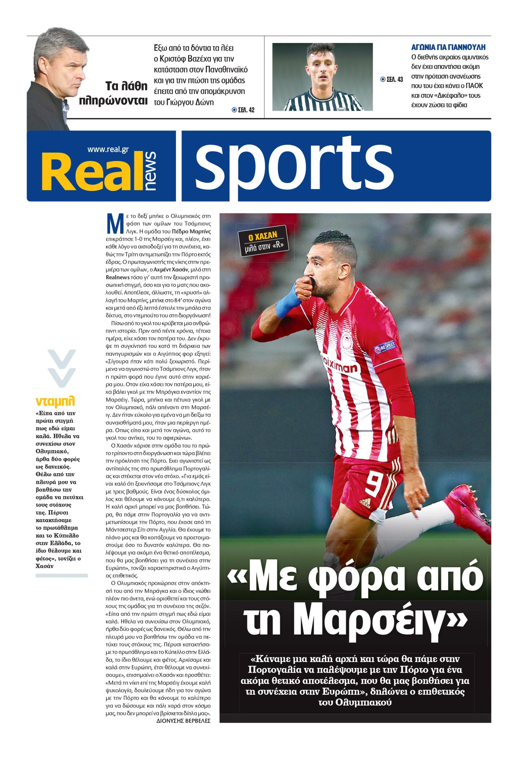 – Μετά το γκολ στη Μαρσέιγ ο Αχμέντ Χασάν δηλωνει στην «R»: «Θα παλέψουμε στο Οπόρτο για θετικό αποτέλεσμα».