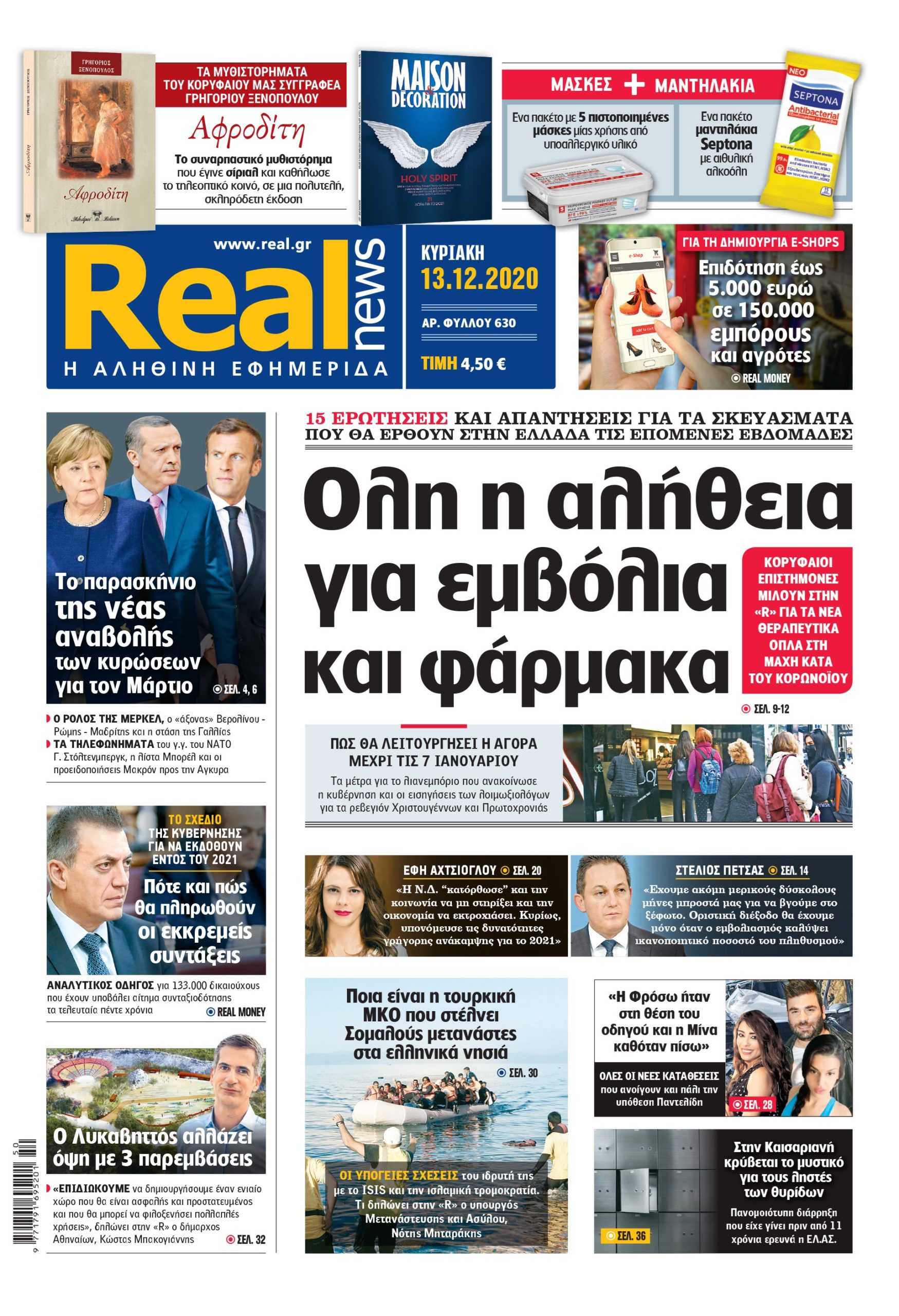 Με τίτλο: «Ολη η αλήθεια για εμβόλια και φάρμακα» κυκλοφορεί, σήμερα, η Realnews. Η εφημερίδα δημοσιεύει 15 ερωτήσεις και απαντήσεις για τα σκευάσματα που θα έρθουν στην Ελλάδα τις επόμενες εβδομάδες.