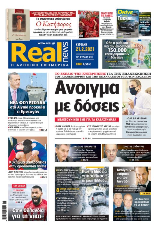 Με τίτλο: «Ανοιγμα µε δόσεις» κυκλοφορεί, σήμερα, η Realnews.