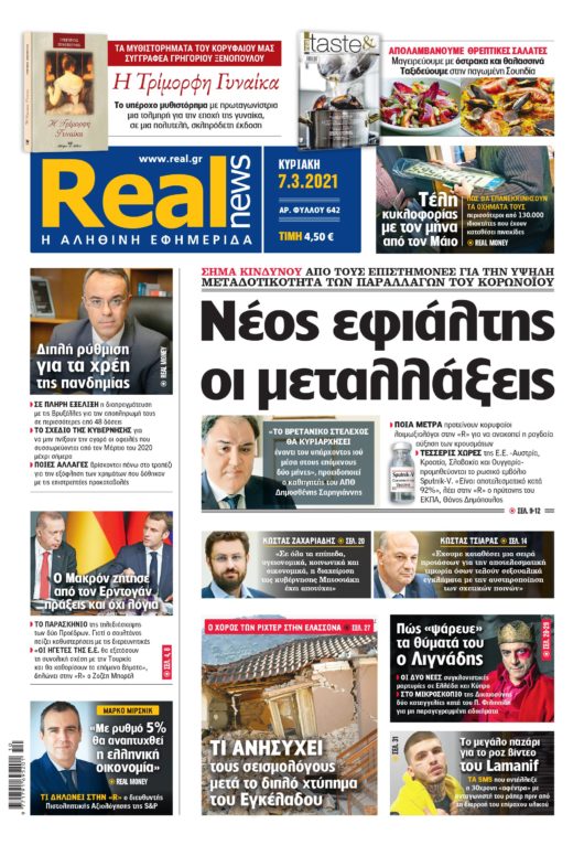 Με τίτλο: «Νέος εφιάλτης οι μεταλλάξεις» κυκλοφορεί, σήμερα, η Realnews.