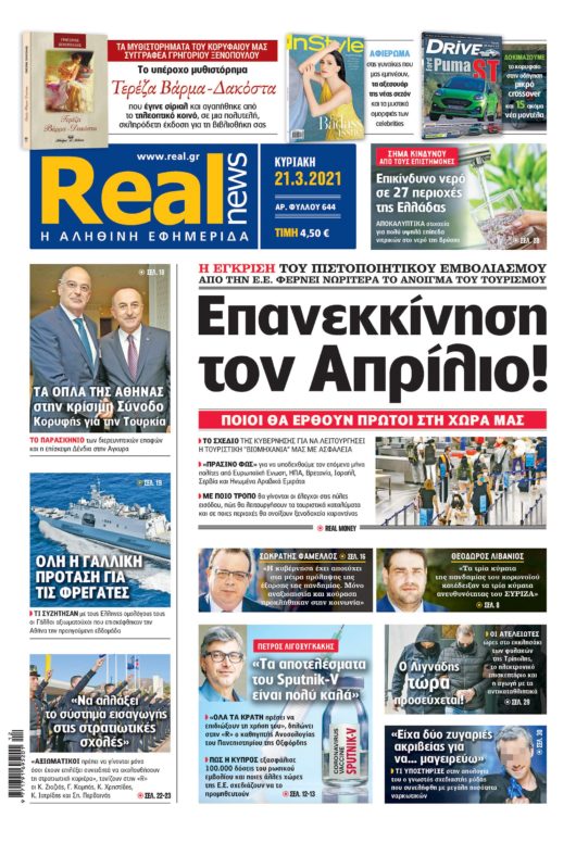 Με τίτλο: «Επανεκκίνηση τον Απρίλιο!» κυκλοφορεί, σήμερα, η Realnews