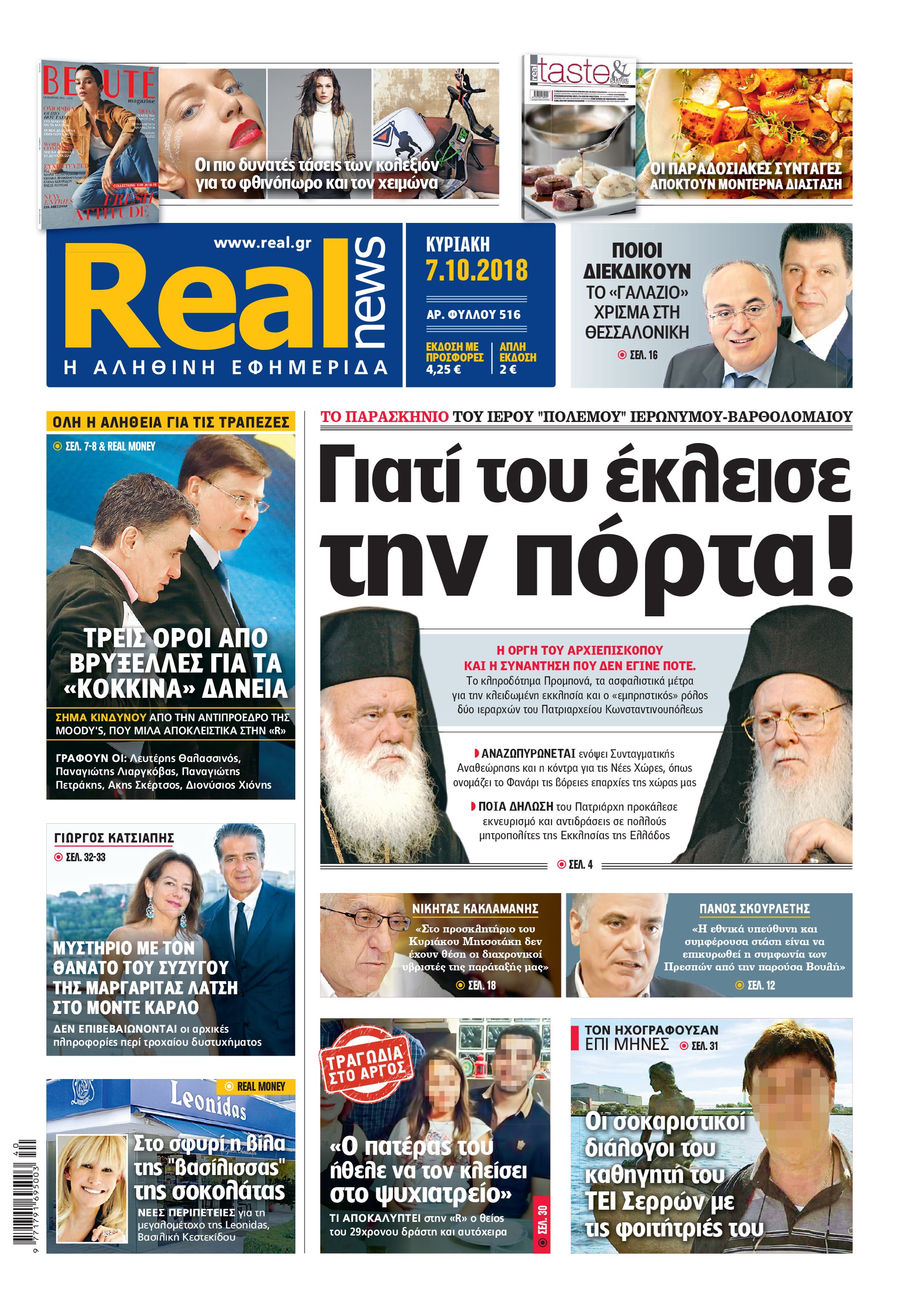 Με τίτλο: «Γιατί του έκλεισε την πόρτα!», κυκλοφορεί σήμερα η Realnews