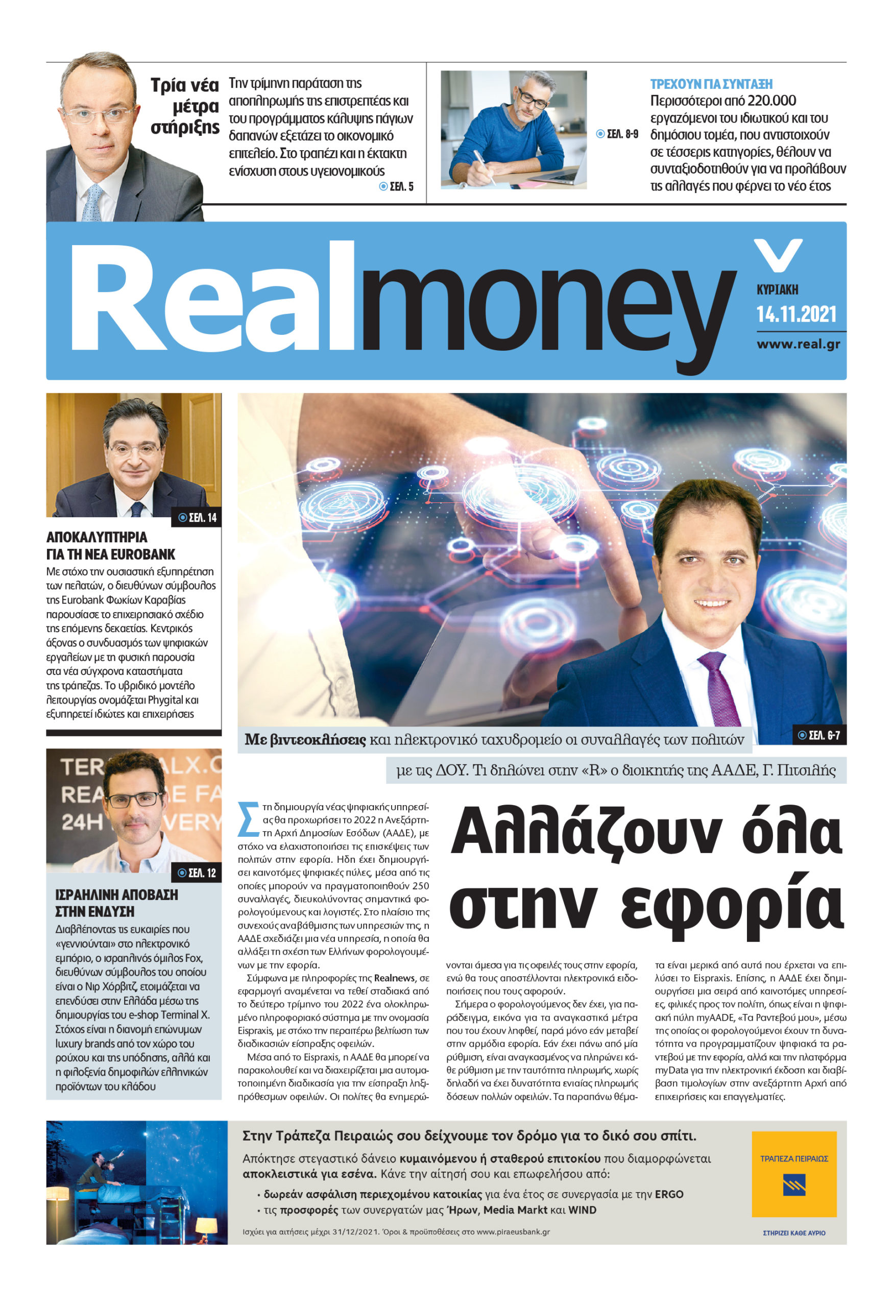 Με τίτλο: «Σε καραντίνα οι ανεμβολίαστοι» κυκλοφορεί σήμερα η Realnews.