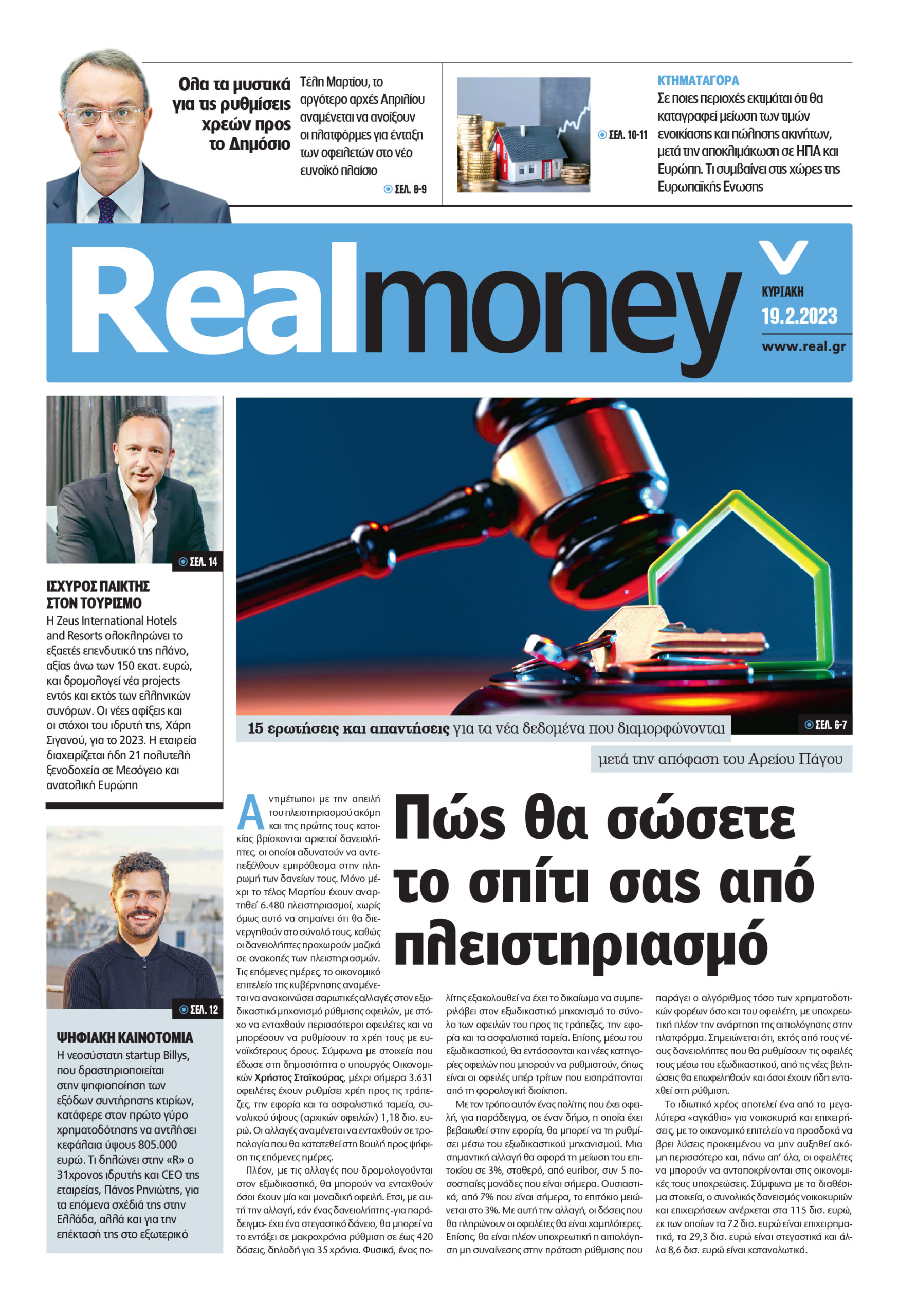 – Οδηγός επιβίωσης για την προστασία της πρώτης κατοικίας. Πώς θα σώσετε το σπίτι σας από πλειστηριασμό. 15 ερωτήσεις και απαντήσεις για τα νέα δεδομένα που διαμορφώνονται μετά την απόφαση του Αρείου Πάγου. Ποια εργαλεία έχουν στη διάθεσή τους οι δανειολήπτες για να μη χάσουν την περιουσία τους. Την υιοθέτηση του κυπριακού μοντέλου, που δίνει τη δυνατότητα στους οφειλέτες να εξαγοράσουν τα δάνειά τους από τις τράπεζες πριν πωληθούν στα funds, εξετάζει η κυβέρνηση. Οι όροι, οι προϋποθέσεις και τα κριτήρια που βρίσκονται πάνω στο τραπέζι.