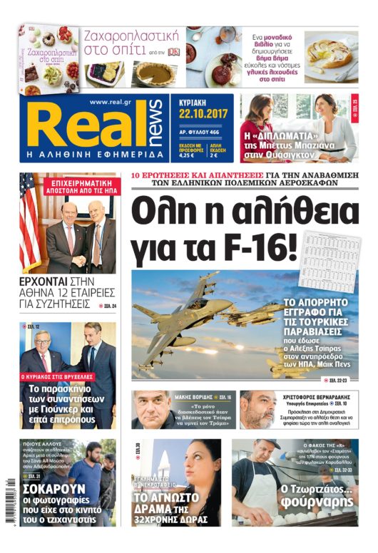 Με τίτλο: «Oλη η αλήθεια για τα F-16!» κυκλοφορεί σήμερα η Realnews, η οποία δημοσιεύει 10 ερωτήσεις και απαντήσεις για την αναβάθμιση των ελληνικών πολεμικών αεροσκαφών.