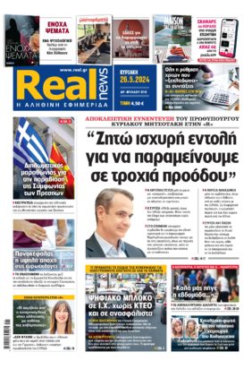 Με τίτλο: «”Ζητώ ισχυρή εντολή για να παραμείνουμε σε τροχιά προόδου”» κυκλοφορεί, σήμερα, η Realnews.