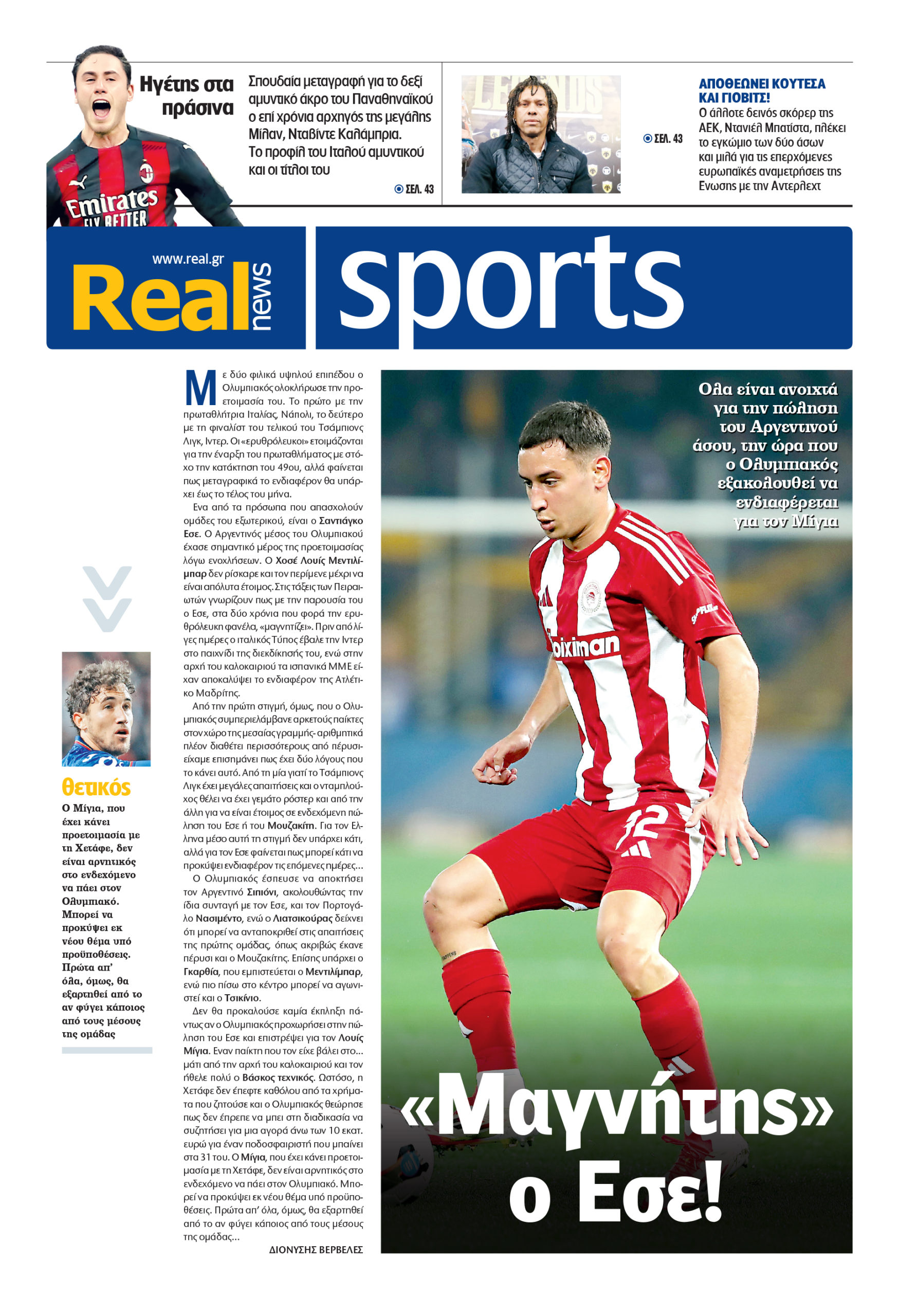 Με τίτλο: «Πύρινη απειλή για τις πόλεις!» κυκλοφορεί, σήμερα, η Realnews.