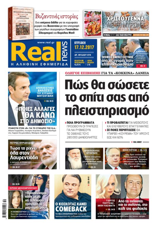 Με τίτλο: «Πώς θα σώσετε το σπίτι σας από πλειστηριασμό», κυκλοφορεί σήμερα η Realnews.