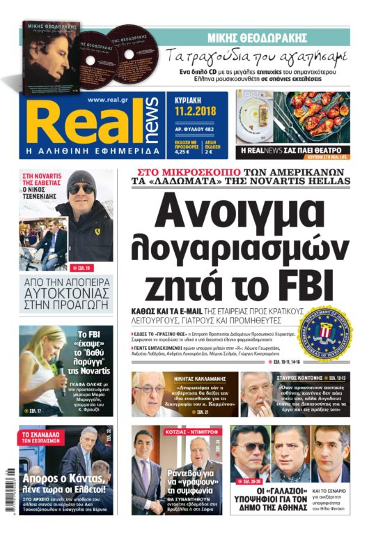 Με τίτλο: «Aνοιγμα λογαριασμών ζητά το FBI» κυκλοφορεί σήμερα η Realnews.