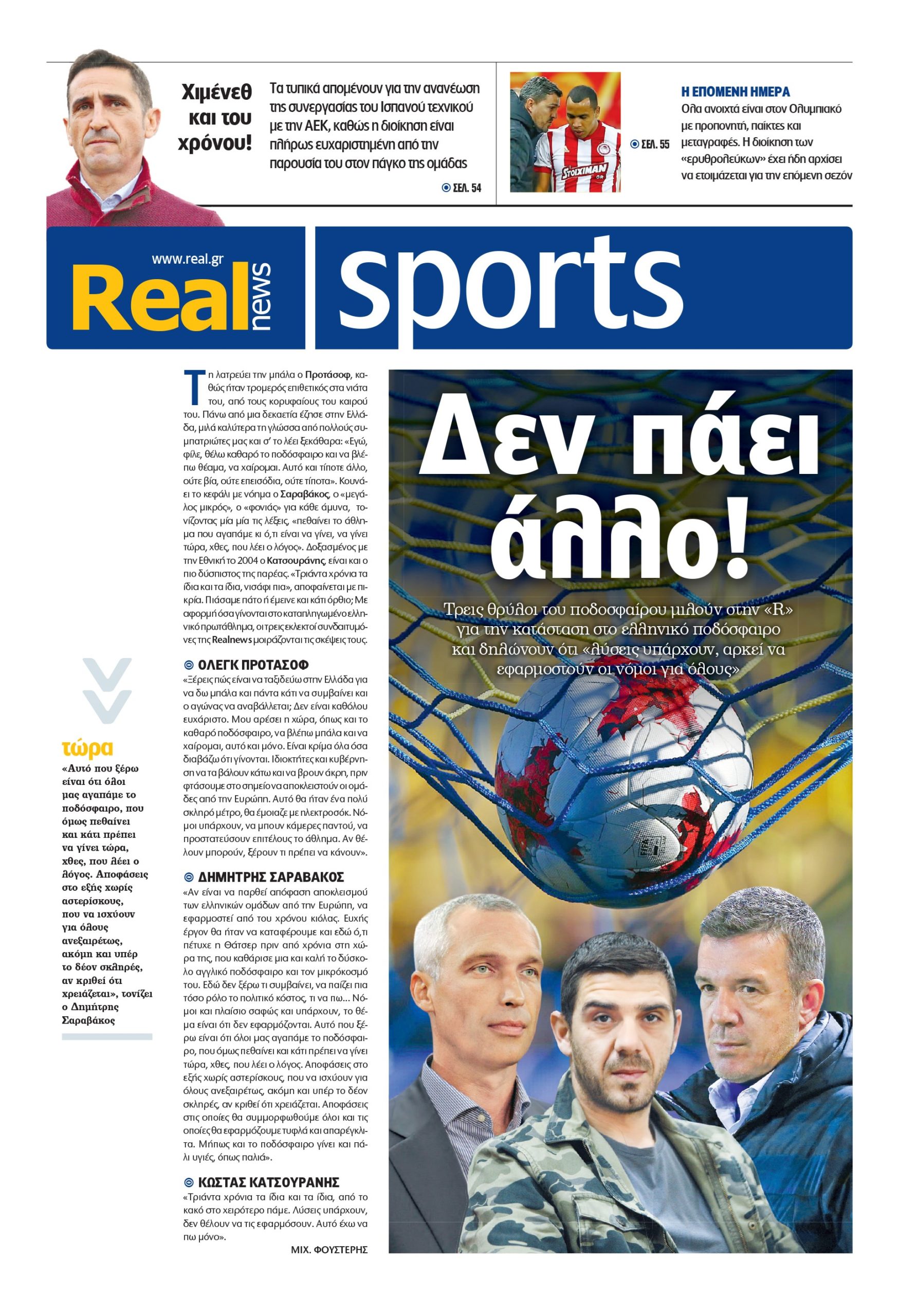 – Προτάσοφ – Σαραβάκος – Κατσουράνης: «Δεν πάει άλλο, να εφαρμοστούν οι νόμοι για όλους». Τρείς δόξες των γηπέδων παρεμβαίνουν μέσω της «R» στη συζήτηση για το ελληνικό ποδόσφαιρο.
