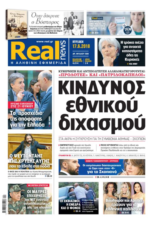 Με τίτλο: «Κίνδυνος εθνικού διχασμού», κυκλοφορεί σήμερα η Realnews.