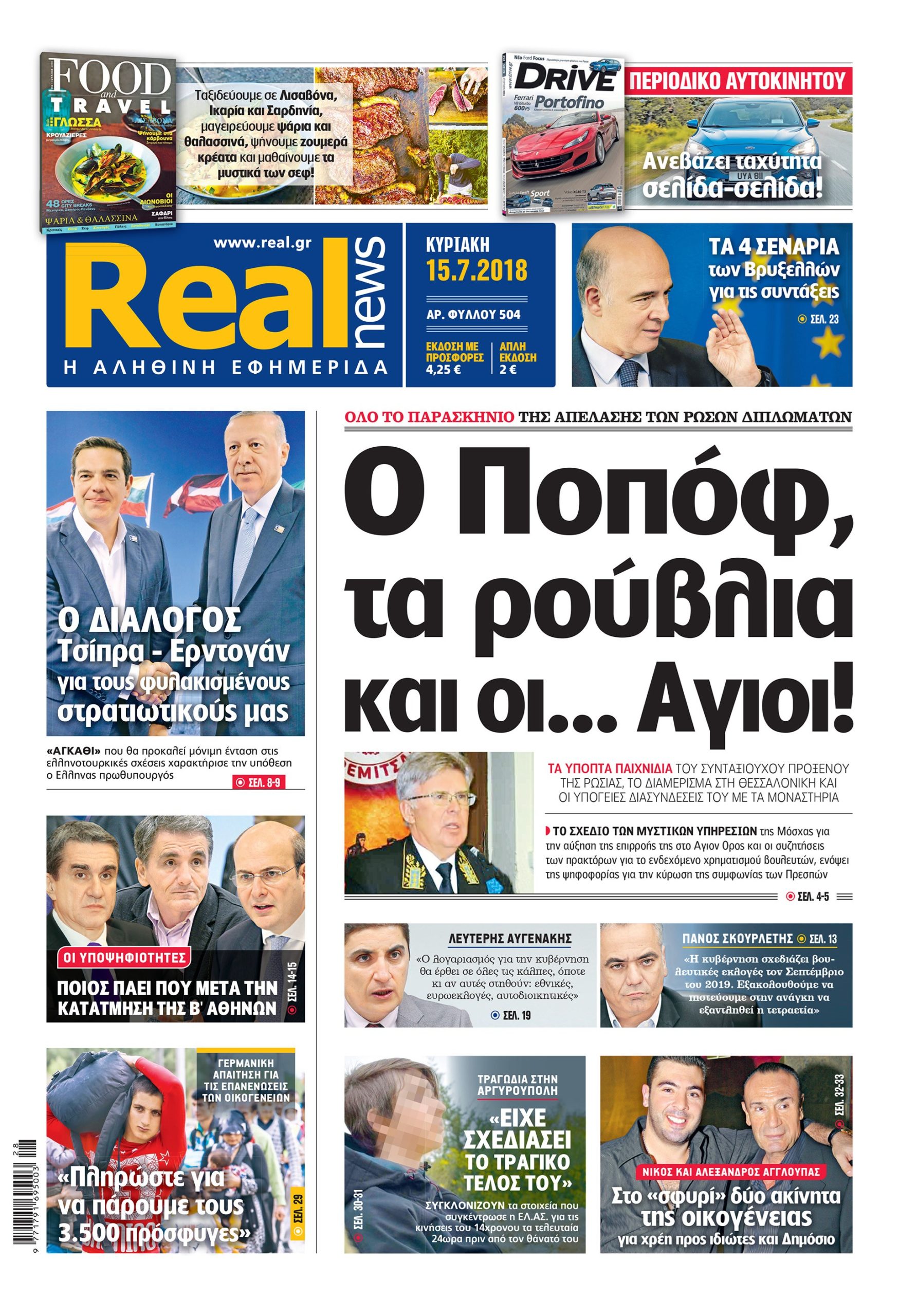 Με τίτλο: «Ο Ποπόφ, τα ρούβλια και οι… Αγιοι!» κυκλοφορεί σήμερα η Realnews