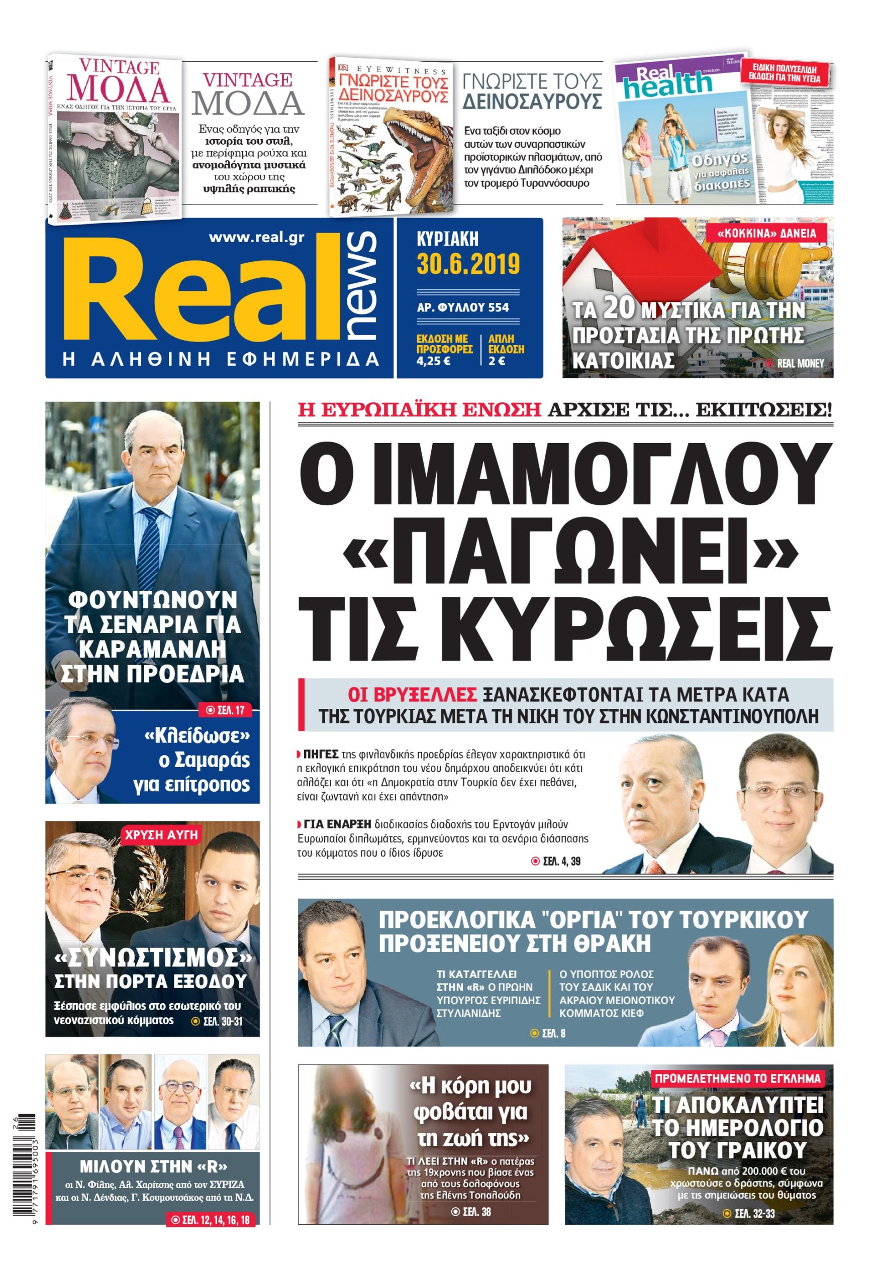 Με τίτλο: “Ο Ιμάμογλου «παγώνει» τις κυρώσεις”, κυκλοφορεί σήμερα η Realnews.