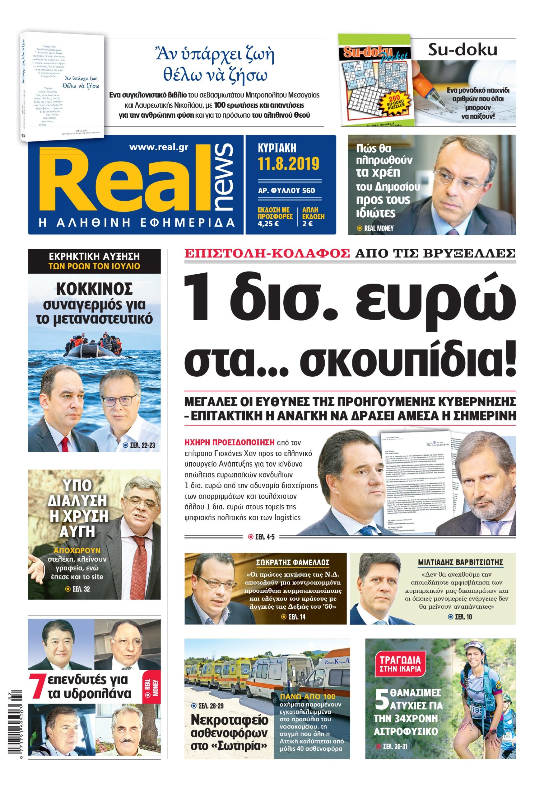 Με τίτλο: «1 δισ. ευρώ στα… σκουπίδια!», κυκλοφορεί σήμερα η Realnews