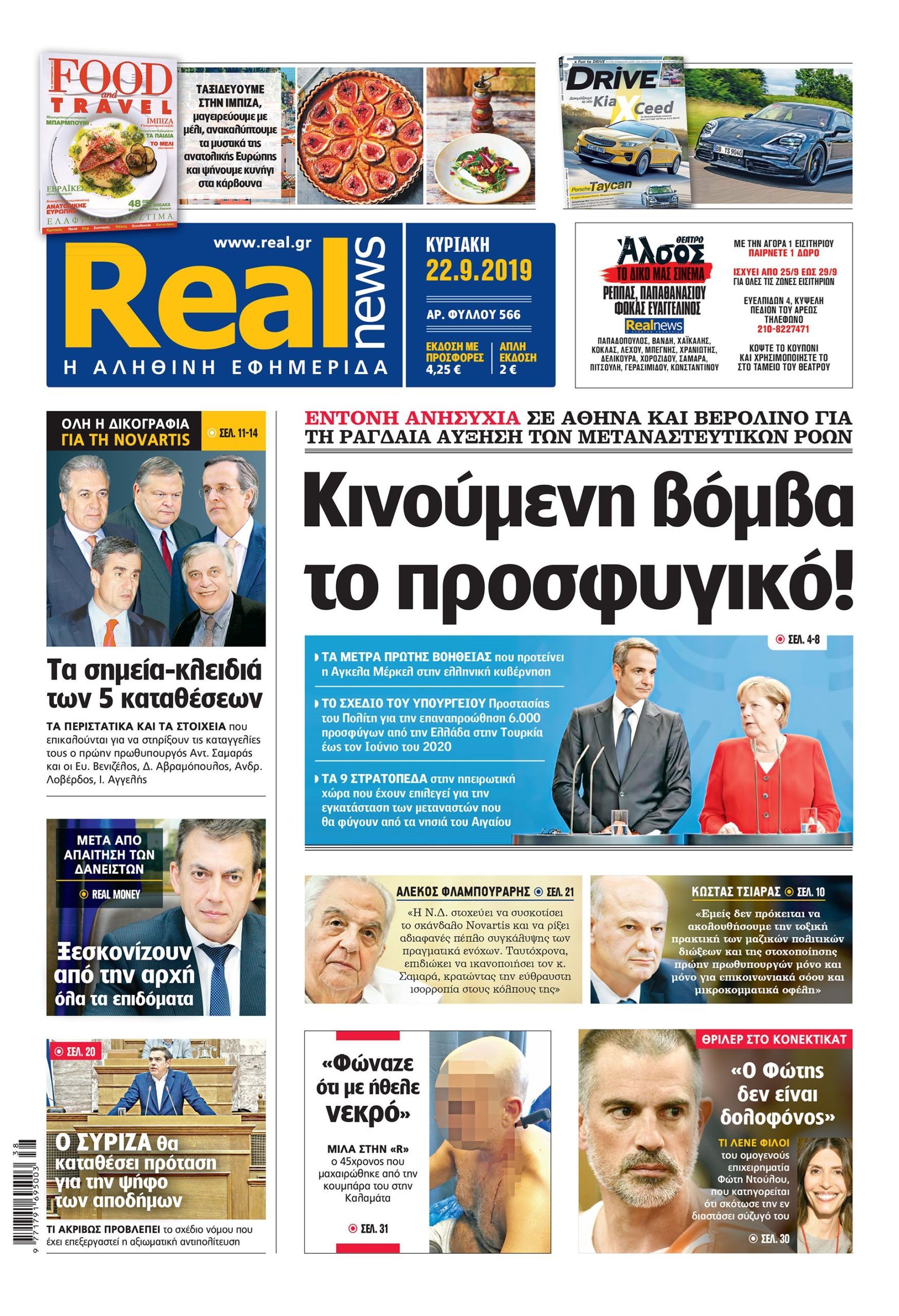 Με τίτλο: «Κινούμενη βόμβα το προσφυγικό!», κυκλοφορεί σήμερα η Realnews