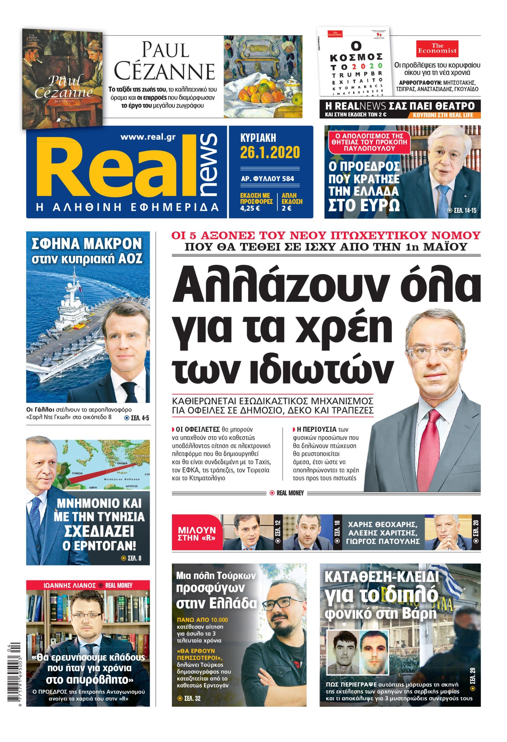 Με τίτλο: «Αλλάζουν όλα για τα χρέη των ιδιωτών», κυκλοφορεί σήμερα η Realnews
