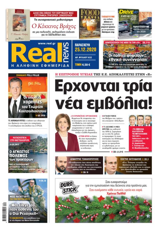 Με τίτλο: «Ερχονται τρία νέα εμβόλια!» κυκλοφορεί, σήμερα, η Realnews. Την αποκάλυψη κάνει στην εφημερίδα η επίτροπος Υγείας της Ε.Ε.