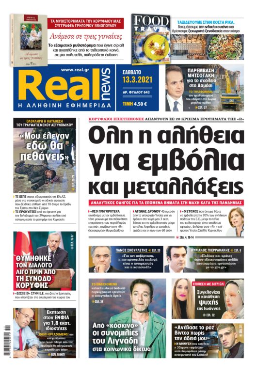 Με τίτλο: «Ολη η αλήθεια για εμβόλια και μεταλλάξεις» κυκλοφορεί σήμερα η Realnews. Κορυφαίοι επιστήμονες απαντούν σε 20 κρίσιμα ερωτήματα της εφημερίδας.