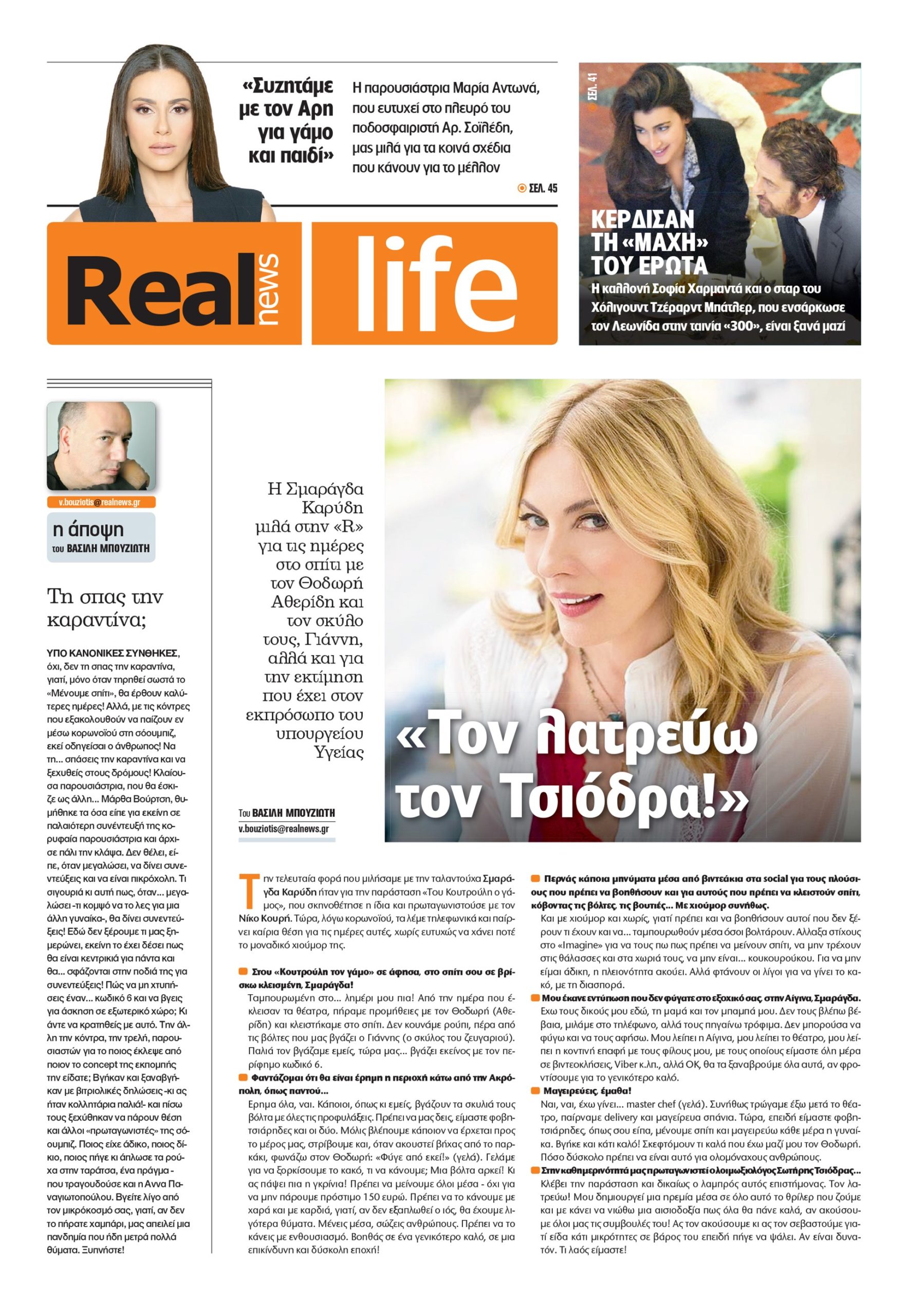Με τίτλο: «Ελπίδες από τους Ελληνες ερευνητές!», κυκλοφορεί σήμερα η Realnews.