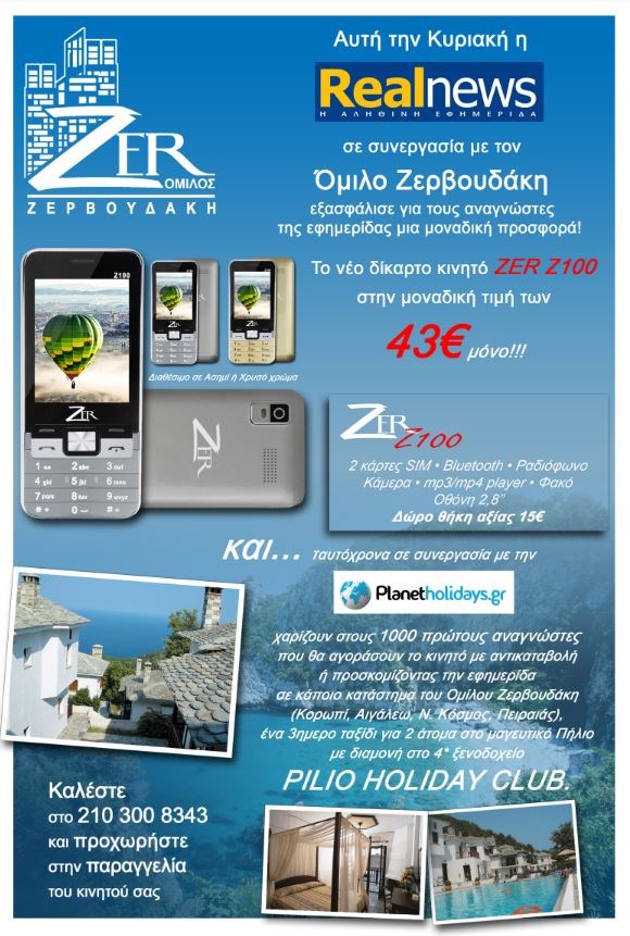Η Realnews σε συνεργασία με τον Όμιλο Ζερβουδάκη εξασφάλισε για τους αναγνώστες της εφημερίδας μία μοναδική προσφορά!