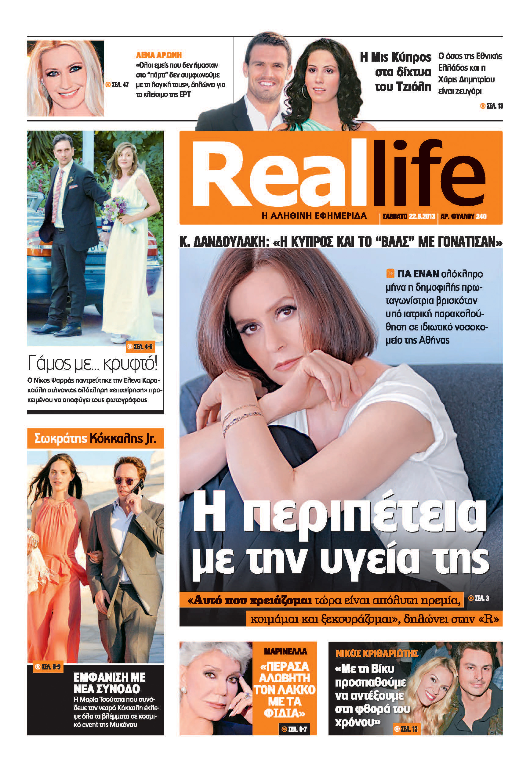 – Η περιπέτεια με την υγεία της Κάτιας Δανδουλάκη: “Η Κύπρος και το “Βαλς” με γονάτισαν”. Για έναν ολόκληρο μήνα η δημοφιλής πρωταγωνίστρια βρισκόταν υπό ιατρική παρακολούθηση σε ιδιωτικό νοσοκομείο της Αθήνας. “Αυτό που χρειάζομαι τώρα είναι απόλυτη ηρεμία, κοιμάμαι και ξεκουράζομαι” δηλώνει στην “R”.