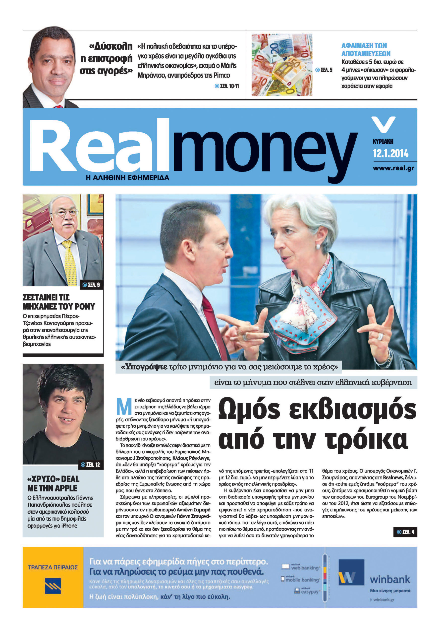 Το κύριο άρθρο της εφημερίδας και του Νίκου Χατζηνικολάου έχει τίτλο: “Εθνικό χρέος!“. Ο Ν. Χατζηνικολάου αναφέρει χαρακτηριστικά: “Οι πολιτικές δυνάμεις που πιστεύουν ότι η Ελλάδα πρέπει να συνεχίσει την ευρωπαϊκή της πορεία, με καλύτερες προϋποθέσεις, οφείλουν τώρα επειγόντως να παραμερίσουν για λίγο όλες τις άλλες διαφορές τους, να συνεννοηθούν και να καταλήξουν σε μια κοινά αποδεκτή λύση για το θέμα της αναδιάρθρωσης του χρέους. Και στη συνέχεια να την προωθήσουν με ενότητα και δυναμισμό, δίνοντας στην υπόλοιπη Ευρώπη ισχυρό μήνυμα για την εθνική μας απόφαση να βγούμε επιτέλους, μετά από έξι μαύρα χρόνια δυστυχίας και μιζέριας, από τον φαύλο κύκλο της ύφεσης, της λιτότητας και της ανεργίας”.