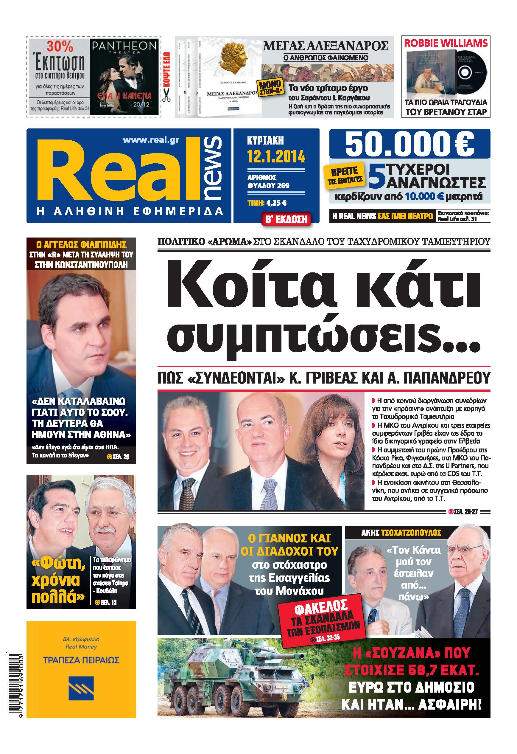 Με τίτλο: “Κοίτα κάτι συμπτώσεις…” κυκλοφορεί σήμερα η Realnews, η οποία αναφέρεται στο “πολιτικό “άρωμα” στο σκάνδαλο του Ταχυδρομικού Ταμιευτηρίου”. Στο πολυσέλιδο ρεπορτάζ της, η εφημερίδα διερευνά “πώς “συνδέονται” Κ. Γριβέας και Α. Παπανδρέου”. Χαρακτηριστικά αναφέρονται: