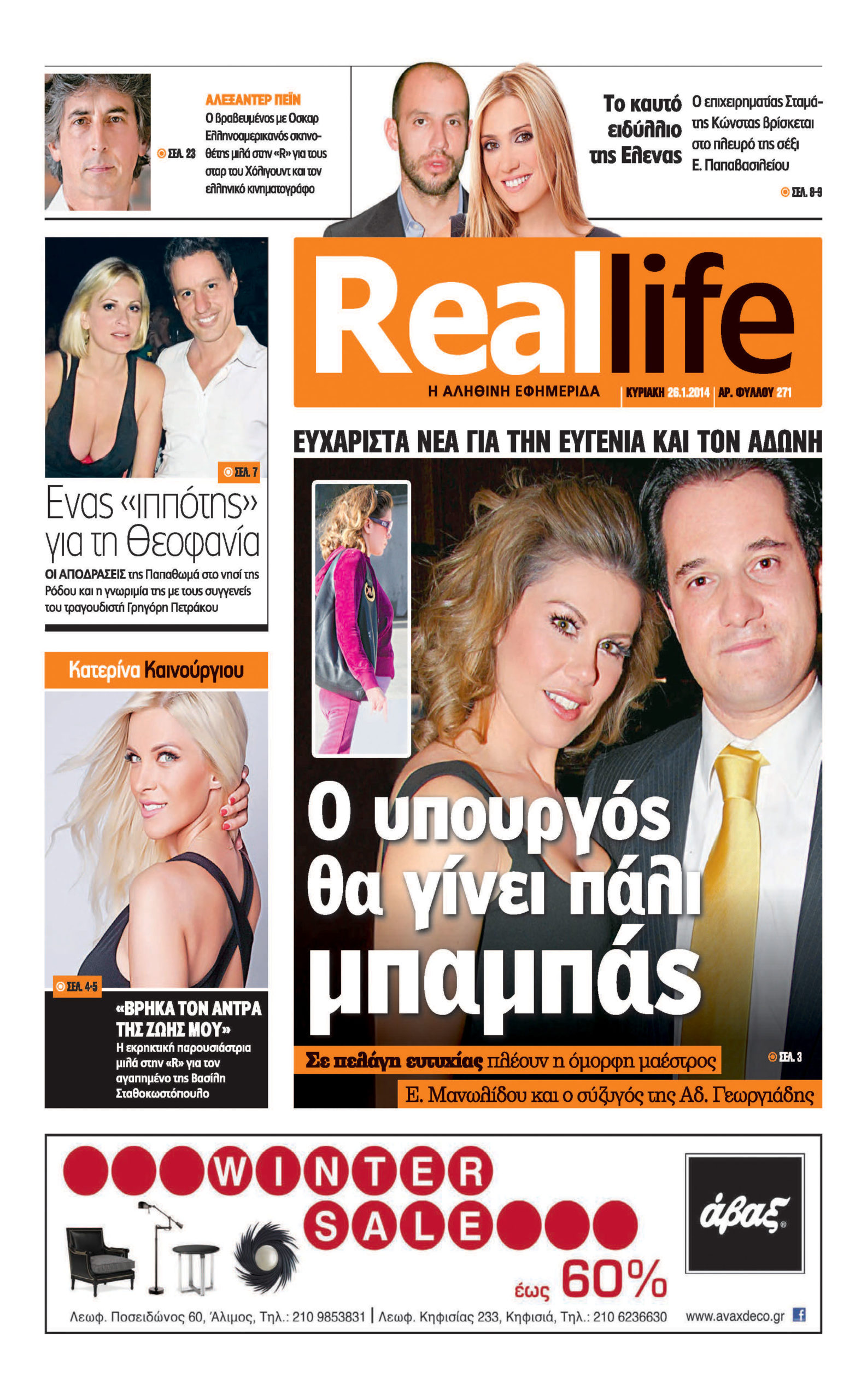 – Ο υπουργός θα γίνει πάλι μπαμπάς. Ευχάριστα νέα για την Ευγενία και τον Αδωνη. Σε πελάγη ευτυχίας πλέουν η όμορφη μαέστρος Ε. Μανωλίδου και ο σύζυγός της Αδ. Γεωργιάδης.