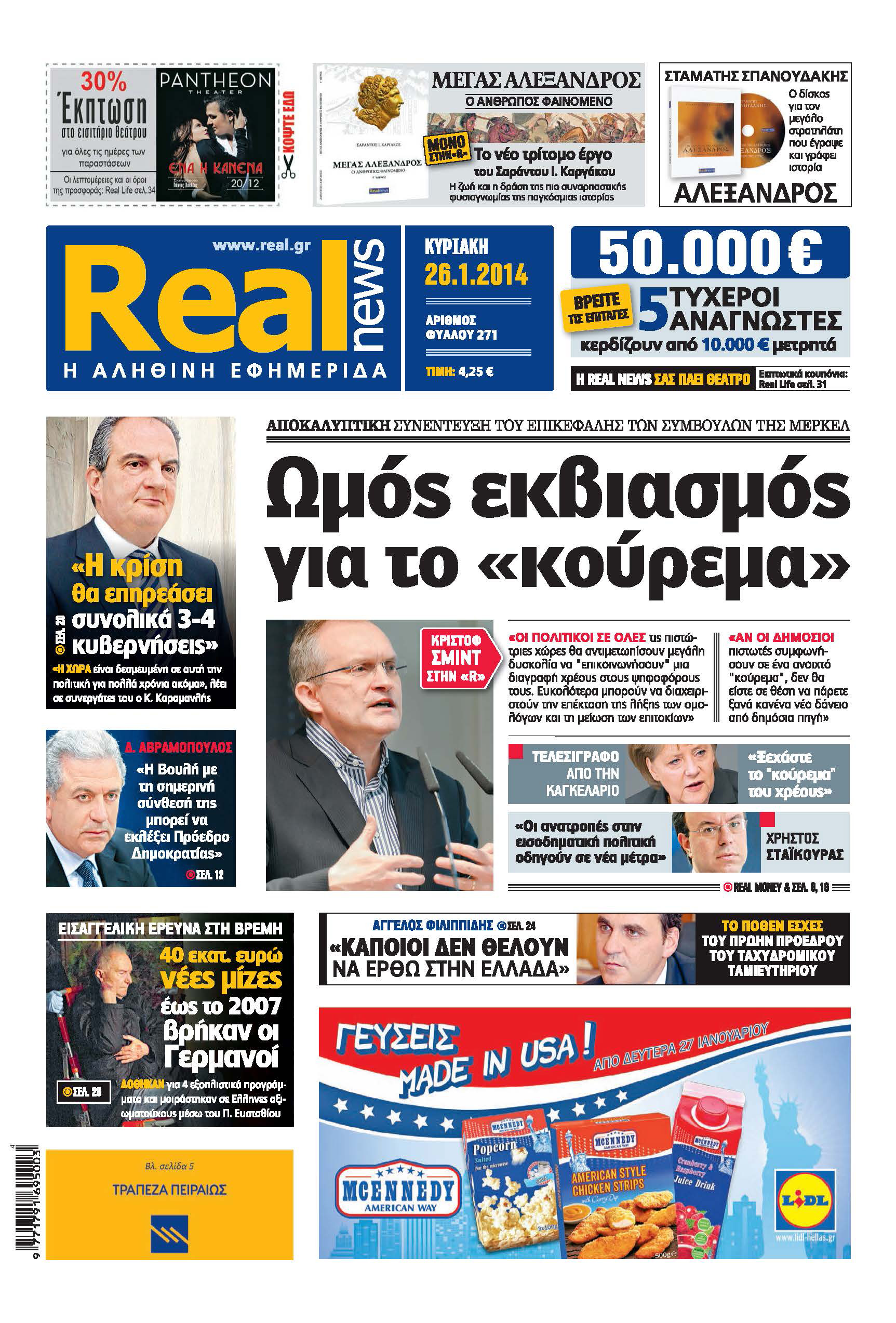 Με τίτλο: “Ωμός εκβιασμός για το “κούρεμα” “κυκλοφορεί σήμερα η Realnews, η οποία φιλοξενεί αποκαλυπτική συνέντευξη του επικεφαλής των συμβούλων της Μέρκελ, Κριστόφ Σμιντ.