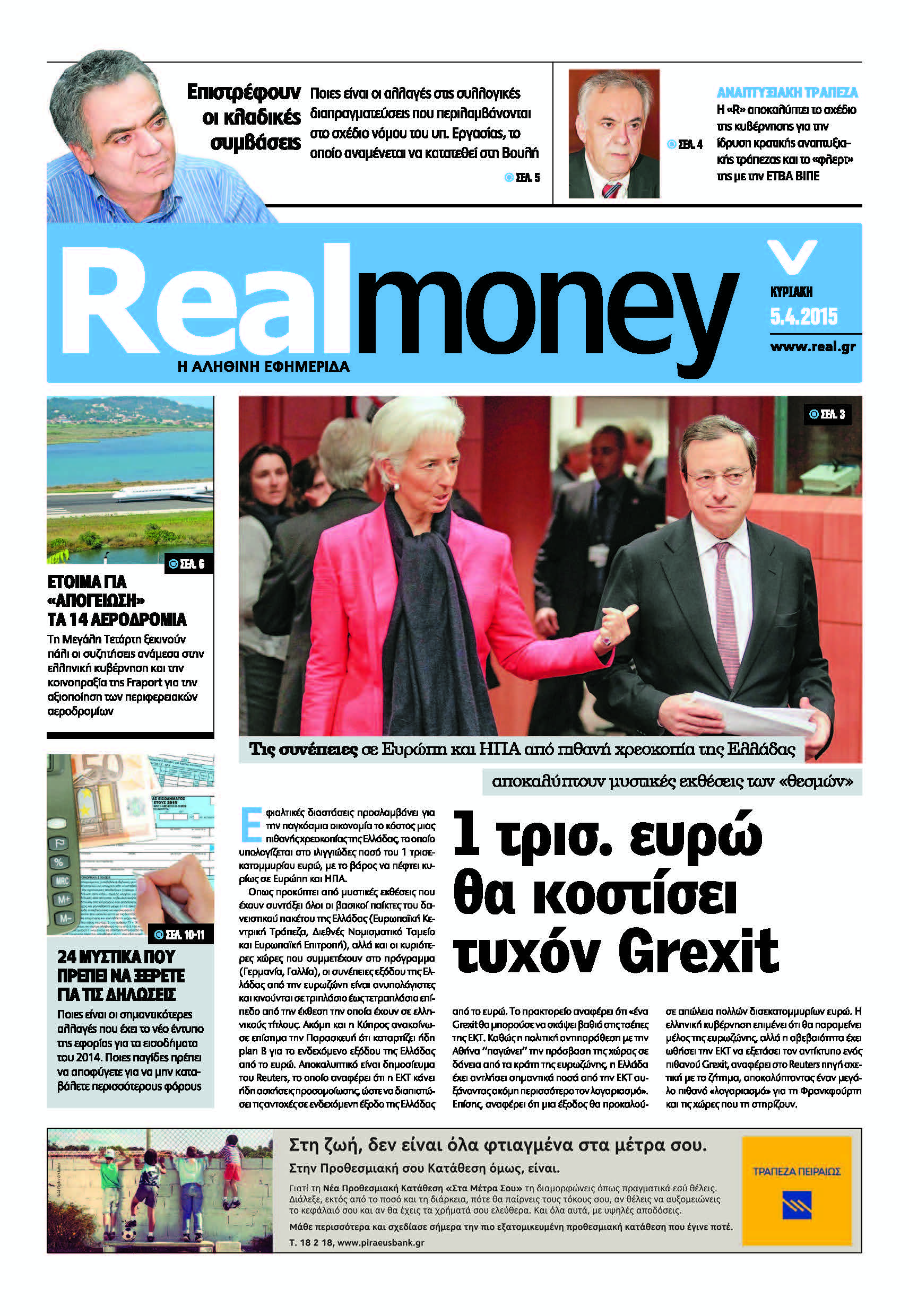 – Μυστική έκθεση Ντράγκι για το κόστος ενδεχόμενου Grexit. Σε 1 τρισ. ευρώ υπολογίζονται οι συνέπειες από τυχόν χρεοκοπία της Ελλάδας.