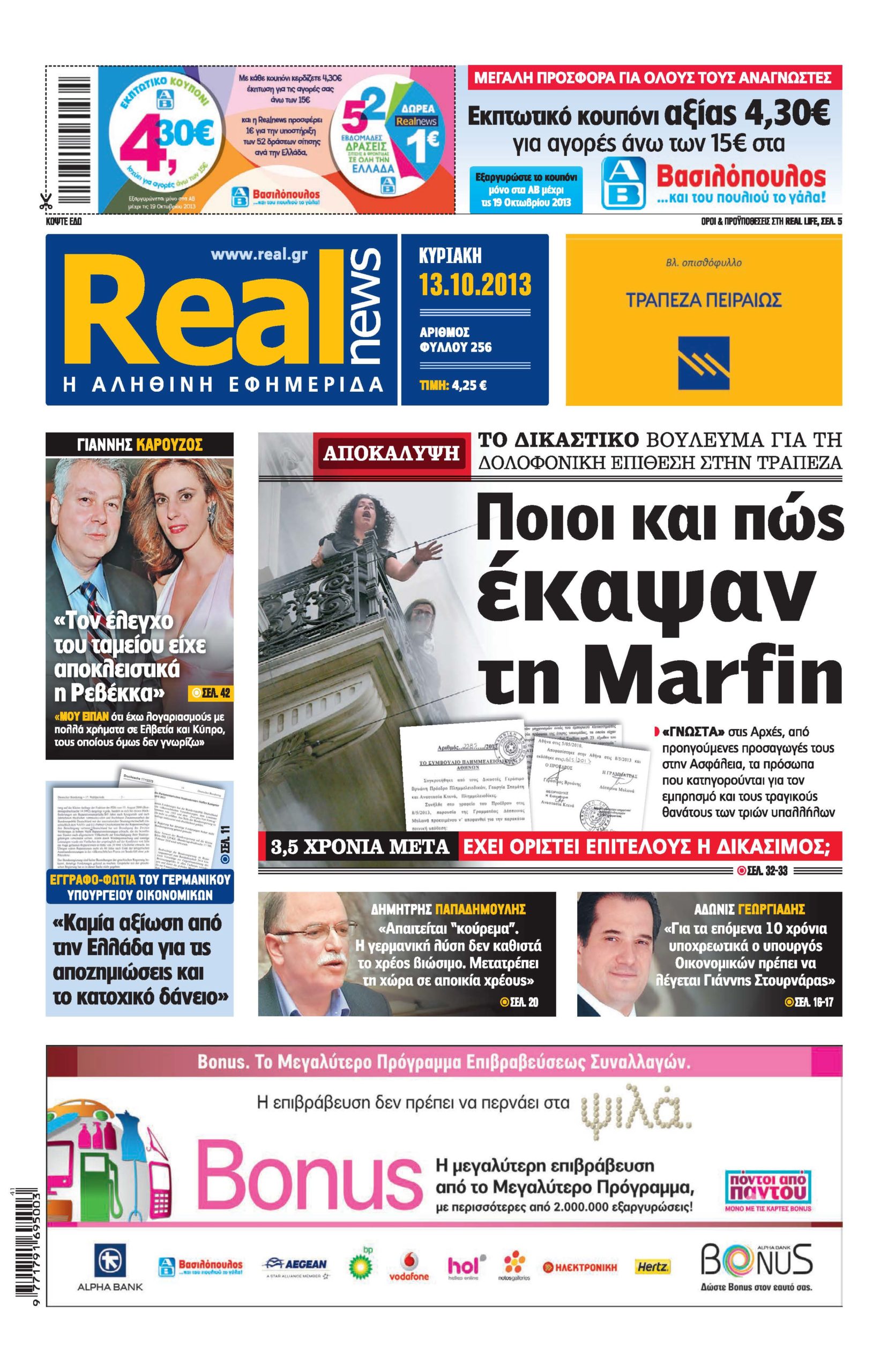Με τίτλο: “Ποιοι και πώς έκαψαν τη Marfin” κυκλοφορεί σήμερα η Realnews, η οποία αποκαλύπτει το δικαστικό βούλευμα για τη δολοφονική επίθεση στην Τράπεζα. Η εφημερίδα επισημαίνει ότι “τα πρόσωπα που κατηγορούνται για τον εμπρησμό και τους τραγικούς θανάτους των τριών υπαλλήλων είναι “γνωστά” στις Αρχές από προηγούμενες προσαγωγές τους στην Ασφάλεια”. Παράλληλα, η Realnews θέτει το ερώτημα αν “3,5 χρόνια μετά έχει οριστεί επιτέλους η δικάσιμος”.