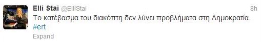 Η Στάη για το κλείσιμο της ΕΡΤ