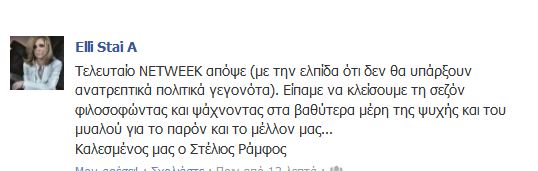 Η τελευταία εκπομπή της Ε. Στάη Στεφανία Κασίμη 15:59, Δευτέρα 02 Ιουλίου 2012 Media Με μια ανάρτησή της στο Facebook, η γνωστή δημοσιογράφος Έλλη Στάη, αποχαιρετά το κοινό της για το καλοκαίρι… Δείτε τι έγραψε… ΕΛΛΗ ΣΤΑΗ Μοιράσου το: σχολίασε κι εσύ (0 σχόλια) Ακολουθήστε το enikos.gr στο Google News και μάθετε πρώτοι όλες τις ειδήσεις Δείτε όλες τις τελευταίες ειδήσεις από την Ελλάδα και τον Κόσμο στο enikos.gr Ειδήσεις Ροή Ειδήσεων 7 ώρες πριν Χριστούγεννα στα μπλόκα: Επιμένουν στις κινητοποιήσεις τους οι αγρότες – Ανοίγουν τα διόδια το Σαββατοκύριακο 8 ώρες πριν Ουκρανία: Η άνευ προηγουμένου επίθεση σε ρωσικό τάνκερ στη Μεσόγειο και το μήνυμα προς στον Πούτιν – Το «μακρύ χέρι» του Κιέβου 7 ώρες πριν Πούτιν: Τα μηνύματα σε Ευρώπη και ΝΑΤΟ από το μαραθώνιο «σόου» του – Η απαίτηση για «σεβασμό» και η ειρήνη «με τους όρους» της Μόσχας 8 ώρες πριν Τραμπ: Δεν αποκλείει την πιθανότητα ενός πολέμου στη Βενεζουέλα – «Ο Μαδούρο ξέρει καλύτερα από τον καθένα τι ακριβώς θέλω» 8 ώρες πριν Συνεχίζει να προκαλεί ο Μίτσκοσκι: «Για μένα το όνομα Μακεδονία είναι ιερό» 28 λεπτά πριν Τα ζώδια σήμερα, Σάββατο 20 Δεκεμβρίου: Παρθένοι, το σύμπαν σας δίνει το κλειδί 7 ώρες πριν Ανακαλύφθηκαν αρχαία χρυσά νομίσματα 2.200 ετών που απεικονίζουν τον θεό Απόλλωνα – Η άγνωστη σύνδεση με τον Φίλιππο Β΄ της Μακεδονίας 8 ώρες πριν Ύπνος: Μια κρυφή κατάσταση του εγκεφάλου πριν από τον ύπνο μπορεί να είναι το “κλειδί” για υψηλή ευφυΐα και δημιουργικότητα 9 ώρες πριν Αριθμολογία: Οι άνθρωποι που έχουν γεννηθεί αυτές τις 4 ημερομηνίες, συχνά παρεξηγούνται – «Η καλοσύνη τους κρύβει τεράστια δύναμη» 4 λεπτά πριν Σαν σήμερα 20 Δεκεμβρίου: Τα σημαντικότερα γεγονότα της ημέρας 9 λεπτά πριν Οι οικονομικές εφημερίδες 20/12/2025 15 λεπτά πριν Οι αθλητικές εφημερίδες 20/12/2025 19 λεπτά πριν Οι πολιτικές εφημερίδες 20/12/2025 28 λεπτά πριν Τα ζώδια σήμερα, Σάββατο 20 Δεκεμβρίου: Παρθένοι, το σύμπαν σας δίνει το κλειδί ENIKOS NETWORK Το ΕΚΑΒ τιμήθηκε από την Ακαδημία Αθηνών για τα 40 χρόνια προσφοράς του Έχετε πραγματικά μεγάλη καρδιά; 10 χαρακτηριστικά όσων έχουν καλοσύνη Αναστολή μέτρων αναγκαστικής εκτέλεσης για κτηνοτρόφους που πλήττονται από την ευλογιά των αιγοπροβάτων Πλήρης επάρκεια προϊόντων στις λαϊκές της Αττικής, παρά τις αγροτικές κινητοποιήσεις – Τι απαντούν οι πωλητές Χαρτογραφώντας το «σημείο χωρίς επιστροφή»: Για πρώτη φορά αποκαλύπτεται με λεπτομέρεια το ακανθώδες όριο της ατμόσφαιρας τ... Η Google καταργεί τη λειτουργία «dark web report» – Πώς θα μπορούν οι χρήστες να διαγράφουν τα δεδομένα τους περισσότερα 05:48 , Σάββατο 20 Δεκεμβρίου 2025 Οι οικονομικές εφημερίδες 20/12/2025 Διαβάστε τα πρωτοσέλιδα από τις οικονομικές εφημερίδες, σήμερα 20/12/2025. 05:43 , Σάββατο 20 Δεκεμβρίου 2025 Οι αθλητικές εφημερίδες 20/12/2025 Διαβάστε τα πρωτοσέλιδα από τις αθλητικές εφημερίδες, σήμερα 20/12/2025. 05:38 , Σάββατο 20 Δεκεμβρίου 2025 Οι πολιτικές εφημερίδες 20/12/2025 Διαβάστε τα πρωτοσέλιδα από τις πολιτικές εφημερίδες, σήμερα 20/12/2025. 04:20 , Σάββατο 20 Δεκεμβρίου 2025 Αγγελική Νικολούλη: Τα συλλυπητήρια για την απώλεια της Ειρήνης Μαρινάκη Τα συλληπητήρια στον πρόεδρο του Mega, τον Βαγγέλη Μαρινάκη, για την απώλεια της μητέρας του Ε... ΤΕΛΕΥΤΑΙΕΣ ΕΙΔΗΣΕΙΣ 4 λεπτά πριν Σαν σήμερα 20 Δεκεμβρίου: Τα σημαντικότερα γεγονότα... 9 λεπτά πριν Οι οικονομικές εφημερίδες 20/12/2025 15 λεπτά πριν Οι αθλητικές εφημερίδες 20/12/2025 19 λεπτά πριν Οι πολιτικές εφημερίδες 20/12/2025 28 λεπτά πριν Τα ζώδια σήμερ