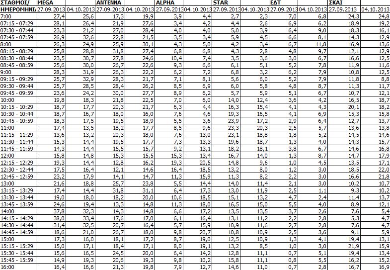 Η τηλεθέαση της Παρασκευής