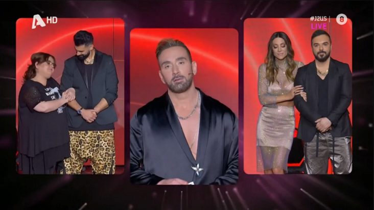 Ο παραγωγός και παρουσιαστής του J2US ανακοίνωσε το αποτέλεσμα, σύμφωνα με το οποίο η Σοφία Βογιατζάκη και ο Σαρμπέλ αποχαιρέτησαν το φαντασμαγορικό σόου του Alpha.