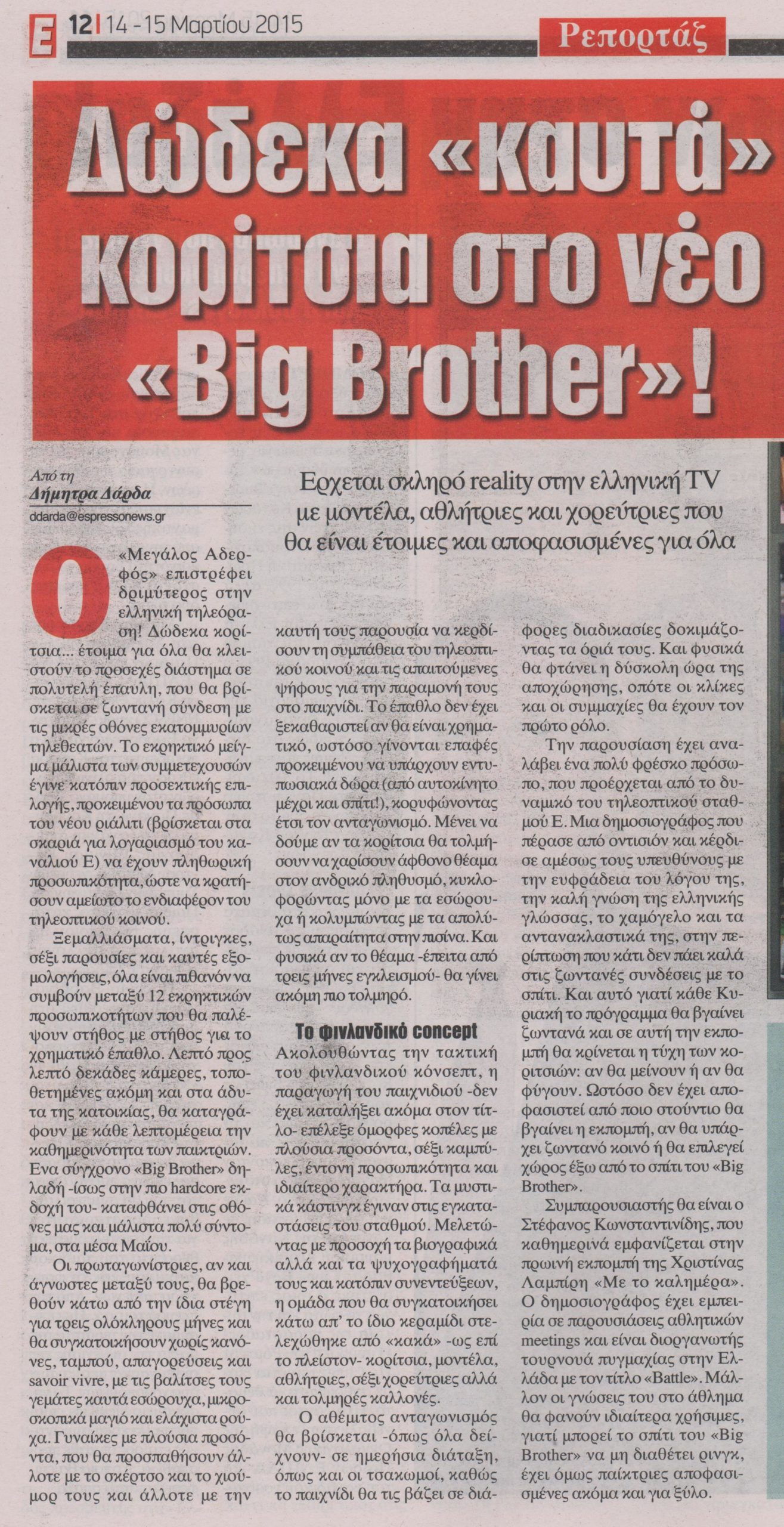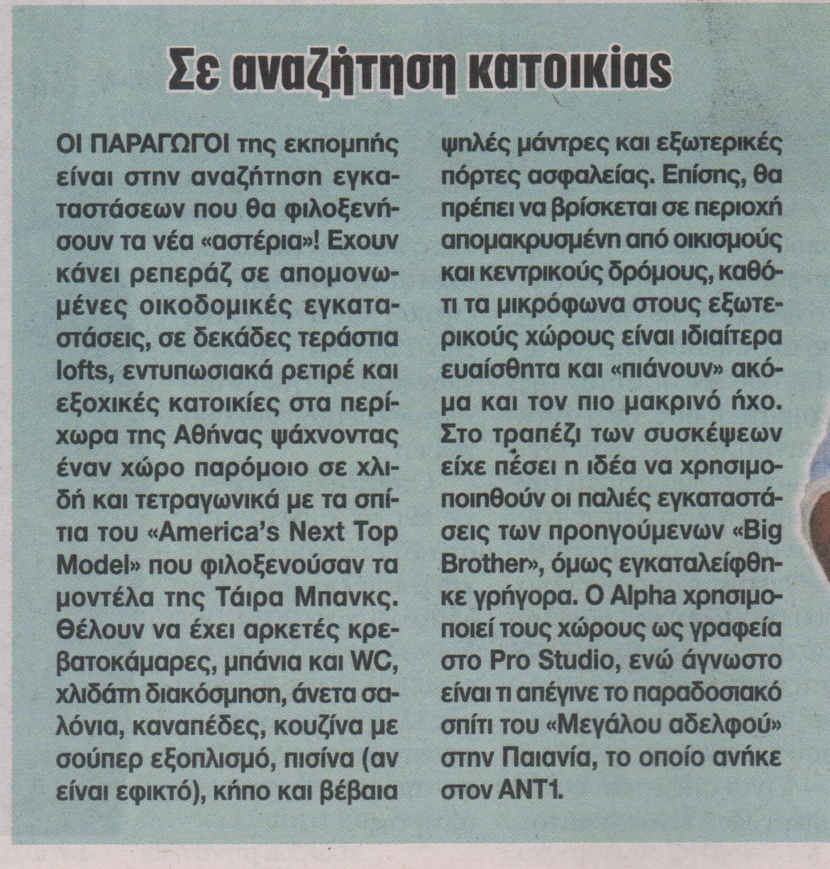Ο “Μεγάλος Αδελφός” επιστρέφει δριμύτερος στην ελληνική τηλεόραση. Δώδεκα κορίτσια έτοιμα για όλα θα κλειστούν το προσεχές διάστημα σε πολυτελή έπαυλη που θα βρίσκεται σε ζωντανή σύνδεση με τις μικρές οθόνες εκατομμυρίων τηλεθεατών.