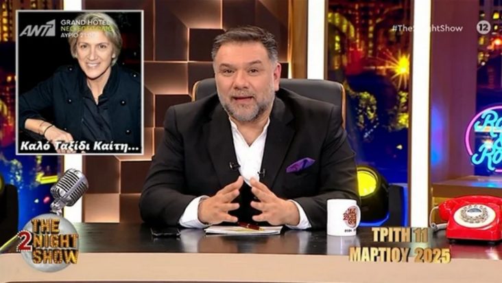 «Χθες, Δευτέρα, που γράφουμε τις συνεντεύξεις όλα αυτά τα χρόνια, ήμασταν εδώ πριν από τις 12 όταν μας ήρθε αυτό το νέο για την Καίτη Κωνσταντίνου. Κεραυνός εν αιθρία την ώρα που γυρίζαμε για την εκπομπή, μείναμε σοκαρισμένοι και άναυδοι. Ένα πρόσωπο που εκτιμούμε και αγαπάμε, δεν θα μιλήσω σε παρελθόντα χρόνο, που σεβόμαστε, μια απίστευτη περίπτωση γυναίκας», ανέφερε εμφανώς συγκινημένος.