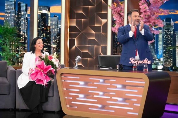 Επίσης, μιλάει για την συνειδητή απουσία της από την τηλεόραση λόγω της μητρότητας, αλλά και για την γνωριμία με τον σύζυγό της, Νίκο Συμεωνίδη, στην σειρά «Κόκκινο Δωμάτιο».