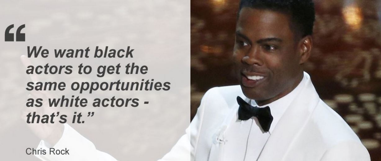 «Καλωσήλθατε στην τελετή των Όσκαρ, γνωστή επίσης και ως τελετή απονομής βραβείων για λευκούς», είπε ο Ροκ, προσθέτοντας: «αντιλαμβάνεστε πως εάν είχαν υποψηφιότητες και για τους παρουσιαστές, δεν θα έπαιρνα ποτέ αυτή τη δουλειά!».