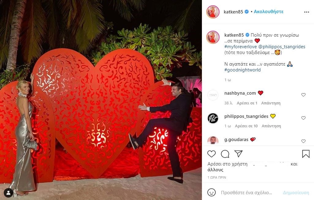 Με μία ανέκδοτη φωτογραφία από… τότε που ταξίδευαν, όπως σημειώνει η ίδια, γιόρτασε διαδικτυακά τον έρωτα η Κατερίνα Καινούργιου.