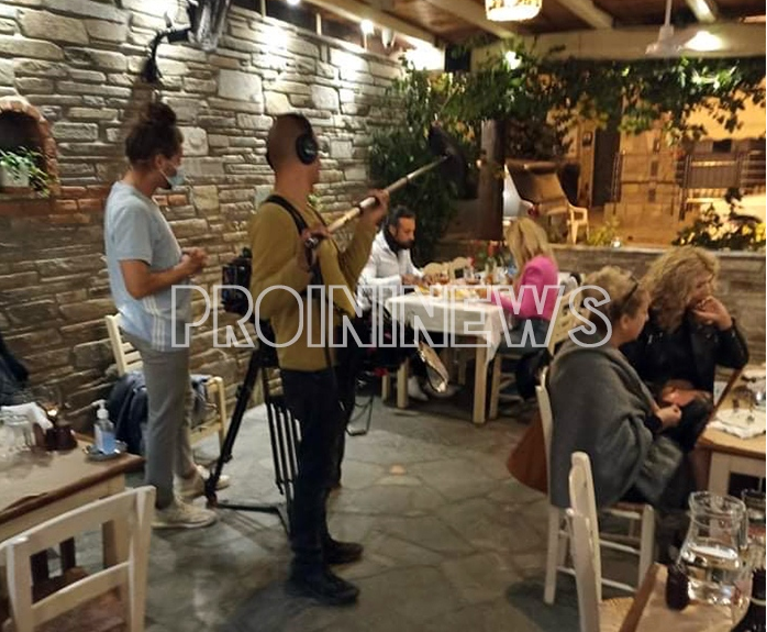 Το απόγευμα πραγματοποιήθηκαν τα πρώτα γυρίσματα στην ταβέρνα “Κωνσταντάκη” τα οποία θα συνεχιστούν και σήμερα Πέμπτη στην παραλία της Νέας Περάμου.