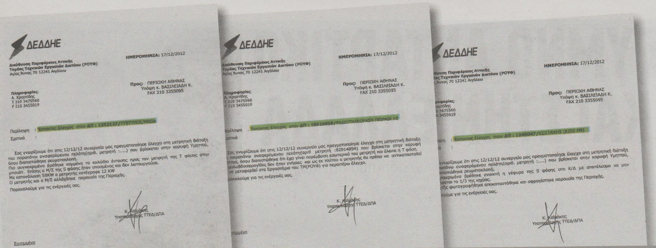 Πελάτες υπεράνω πάσης υποψίας περιλαμβάνονται στους μακροσκελείς καταλόγους με τις ρευματοκλοπές 2009-2012 που κατέγραψαν ειδικά συνεργεία της ΔΕΗ στην Αττική.