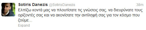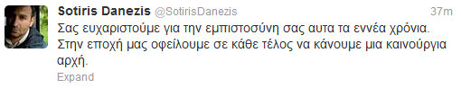 Ο Σωτήρης Δανέζης πριν από λίγα λεπτά αποχαιρέτησε τους τηλεθεατές του μέσα από το twitter του. Η εκπομπή “Εμπόλεμη ζώνη” αποτελεί παρελθόν; Διαβάστε τι έγραψε: