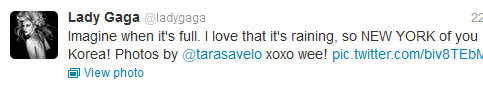 H Lady Gaga βρίσκεται στη Νότια Κορέα για το παγκόσμιο tour “Born This Way Ball 2012“ και δεν έχει σταματήσει λεπτό να “τουιτάρει” και να ανεβάζει διάφορες φωτογραφίες για τους 24 εκατομμύρια followers της.